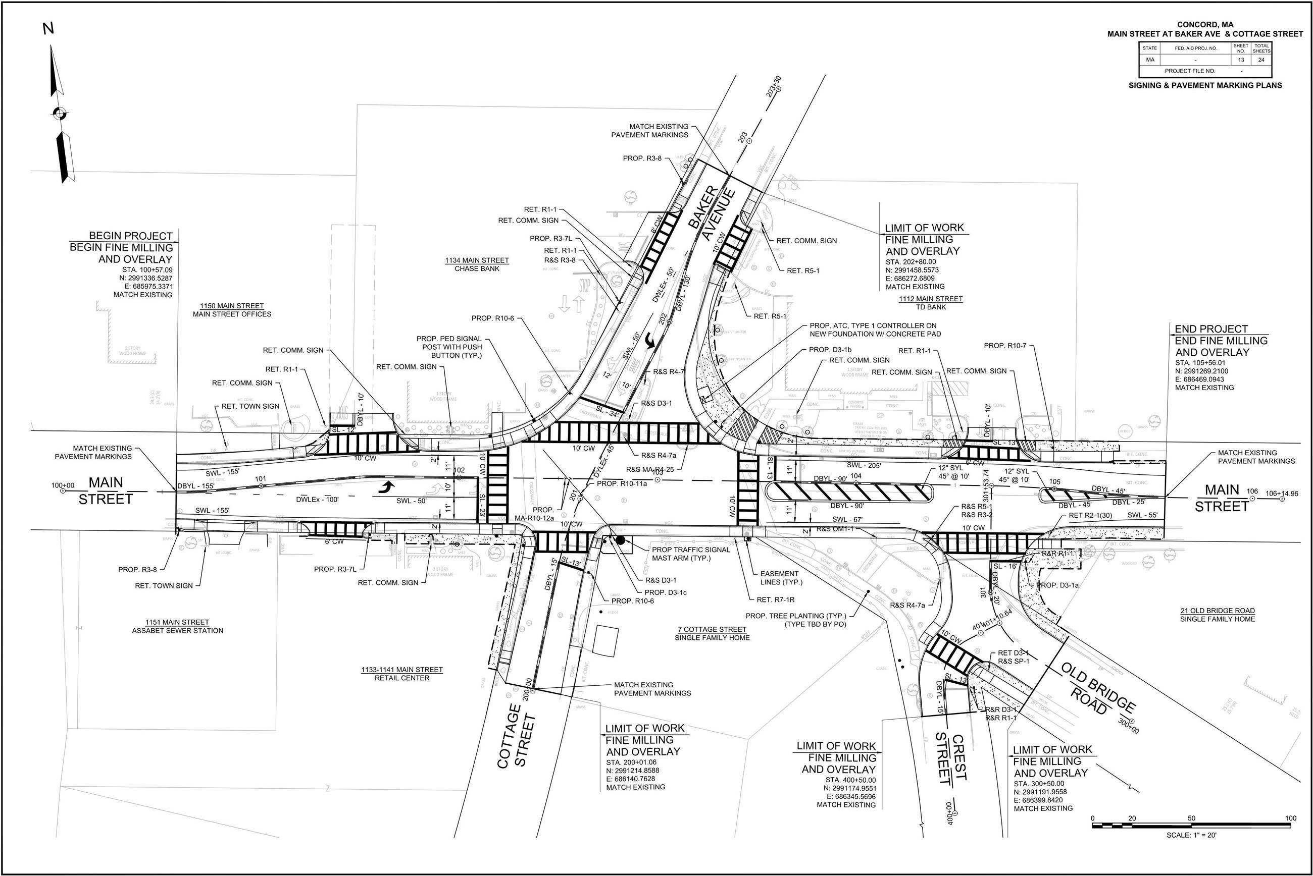 The Engineering Division of Concord Public Works (CPW) began planning and the redesign of the intersection of Main Street, Baker Avenue and Cottage Street, and of Main Street, Old Bridge Road and Crest Street, in March 2023. The overall project involves significant work on both public and private utilities and coordination with direct abutters on project impacts on their properties. CPW anticipates construction will begin this fall.